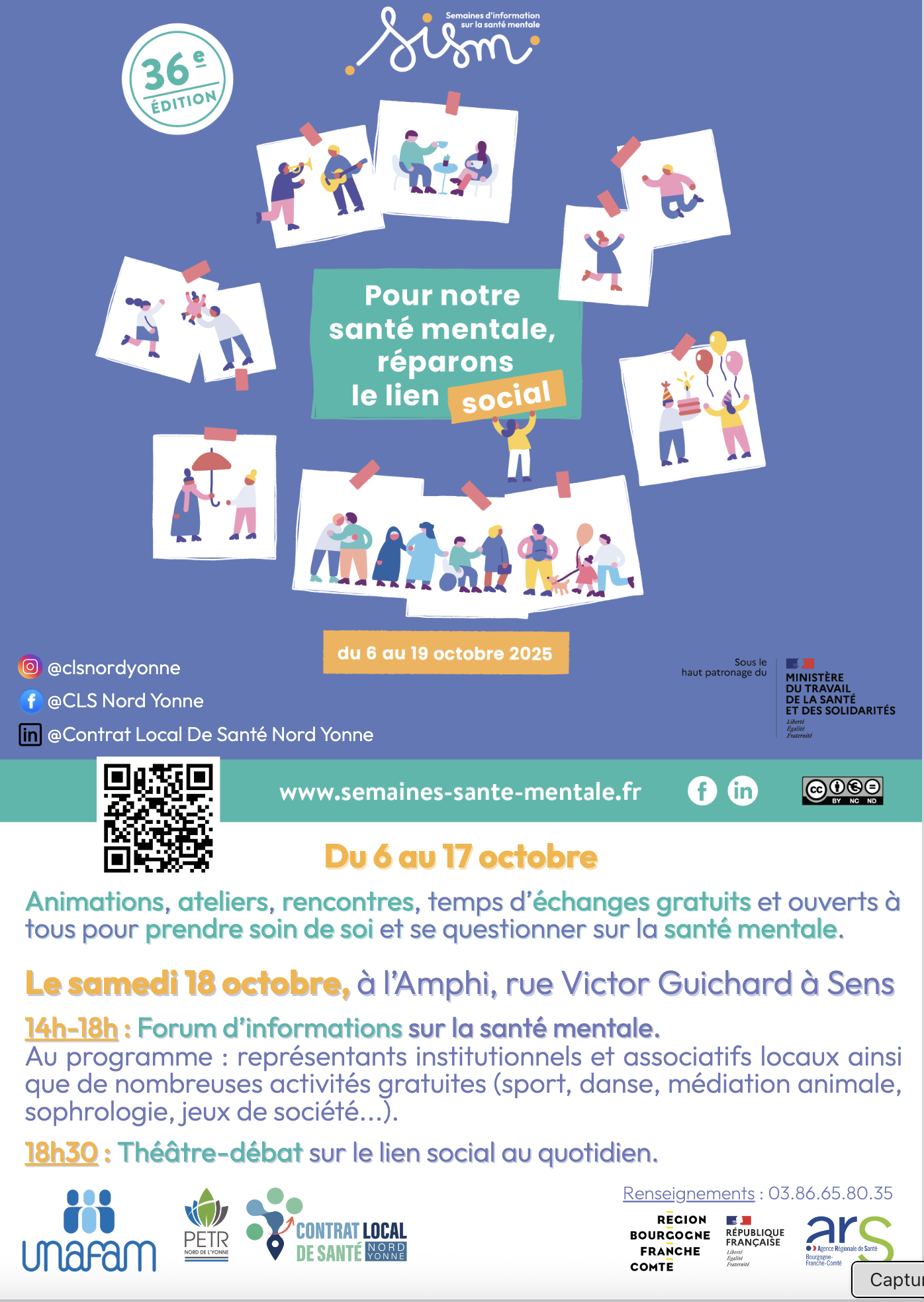 La commune de La Chapelle sur Oreuse s’associe aux Semaines d’Information en Santé Mentale (SISM) organisées sur le Nord de l’Yonne, en partenariat avec de nombreux acteurs locaux.